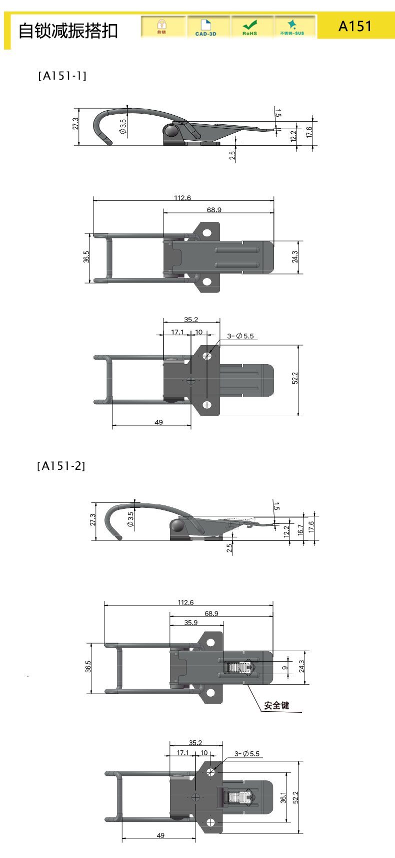 弧形彈簧鋼線使搭扣具有彈性預(yù)壓力,并具有減振功能